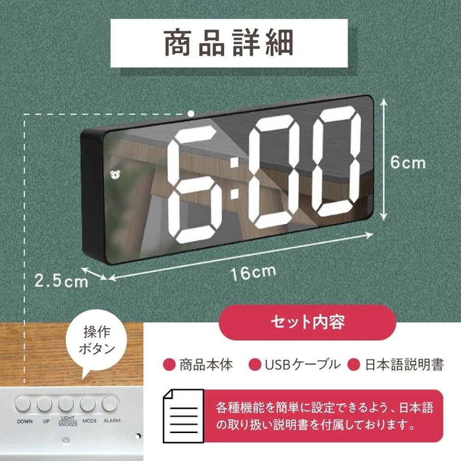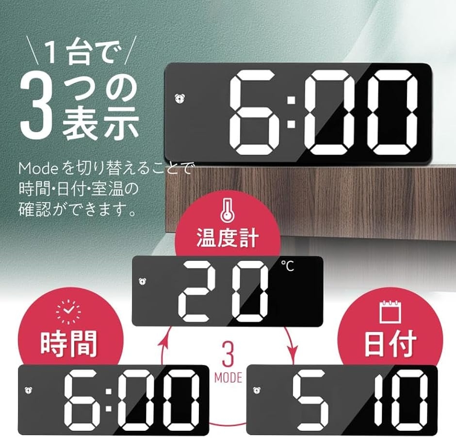 | 商品名 | 目覚まし時計 3Mコード付き デジタル時計 置き時計 日本語説明書付き LED LED時計 卓上 おしゃれ 温度 タイマー 光る インテリア リビング 寝室 プレゼント |