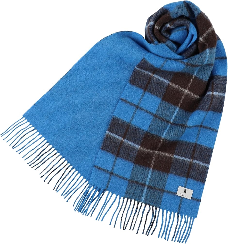 | 商品名 | エレンシア カシミヤブレンド リバーシブル マフラー レディース メンズ UVカット98%以上 チェック 30x186cm 160g 全13色 ブルー |