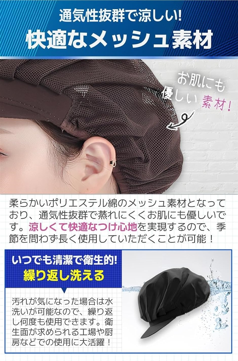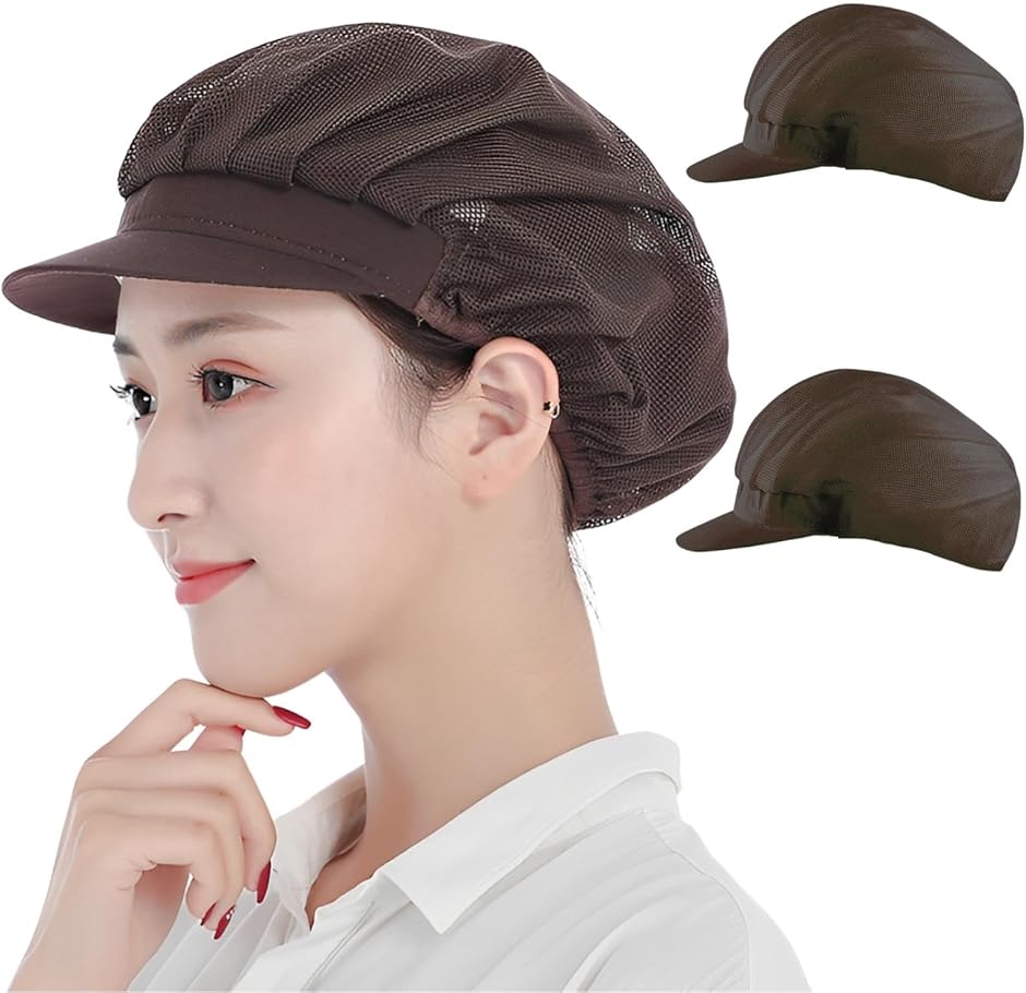 | 商品名 | 衛生キャップ 帽子 つば付き 衛生帽子 調理用帽子 食品工場 厨房 業務用 2枚セット ブラウン フルメッシュ |