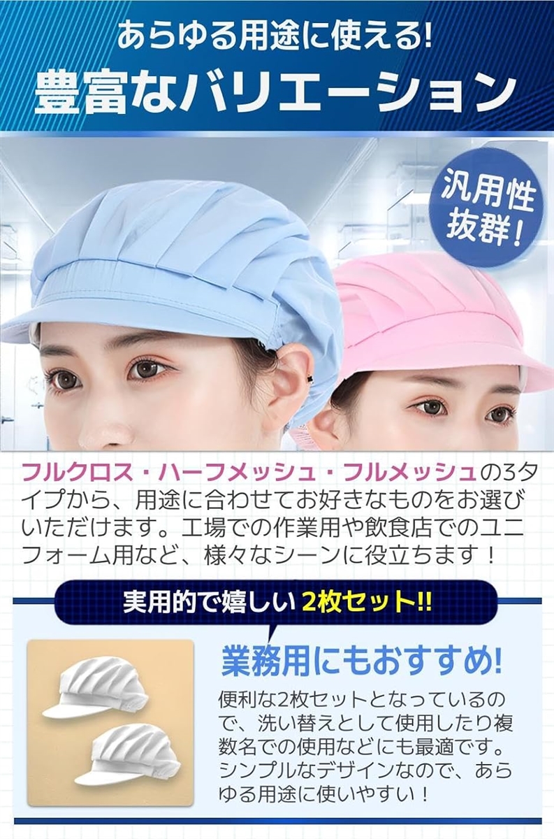 工場での作業用や飲食店でのユニフォーム用など、様々なシーンに役立ちます。