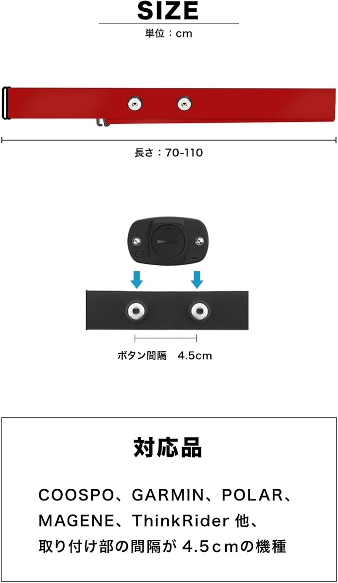 | 商品名 | ハートレートベルト 心拍センサー交換用チェスト・ストラップ Wahoo Polar Garmin Orangetheory 対応 間隔 |