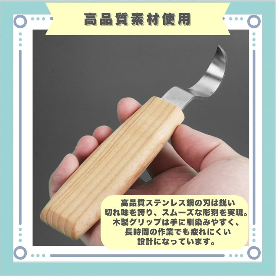「高品質素材使用」高品質ステンレス鋼の刃は鋭い切れ味を誇り、スムーズな彫刻を実現。