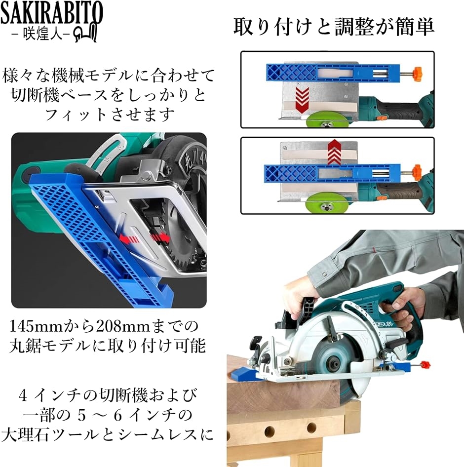 ・145mmから210mmまでの丸鋸モデルに取り付け可能です。