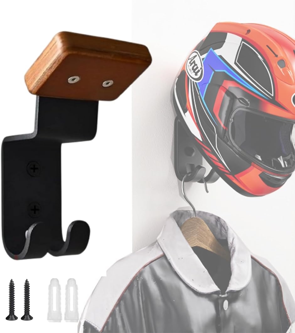 | 商品名 | ヘルメットハンガー ヘルメットホルダー ウォールマウント 壁掛け ヘルメットラック フック付き バイク用 ウッド仕様 |