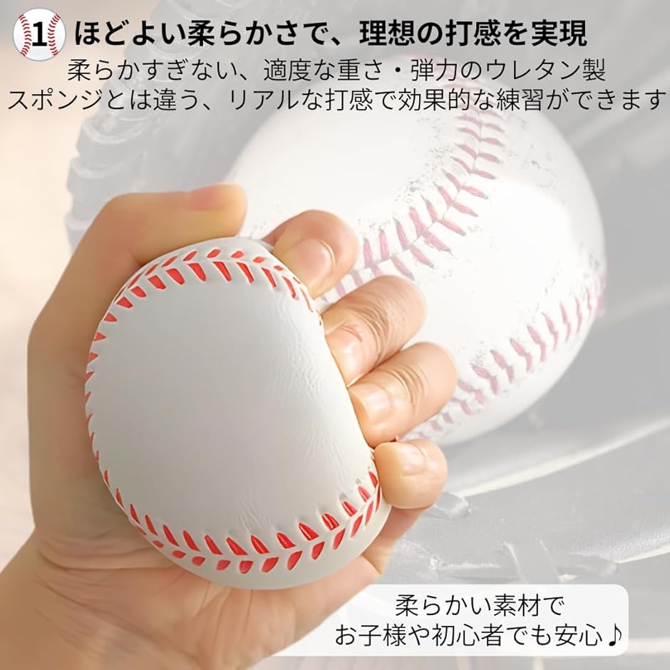 「室内練習にも最適なウレタンボール」お子様や初心者にも安心の柔らかウレタン製野球ボール。