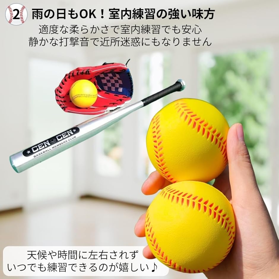 室内トレーニングやキャッチボールに最適です。ゴムボールより静かで安全なので、マンション住まいでも安心。