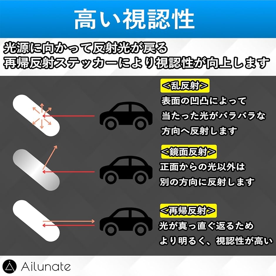 | 商品名 | 反射テープ 反射ステッカー 反射シール 視認性アップ 自転車 ヘルメット 夜間 フラッシュ 車 バイク 反射材 通勤 通学 安全対策 2枚 |