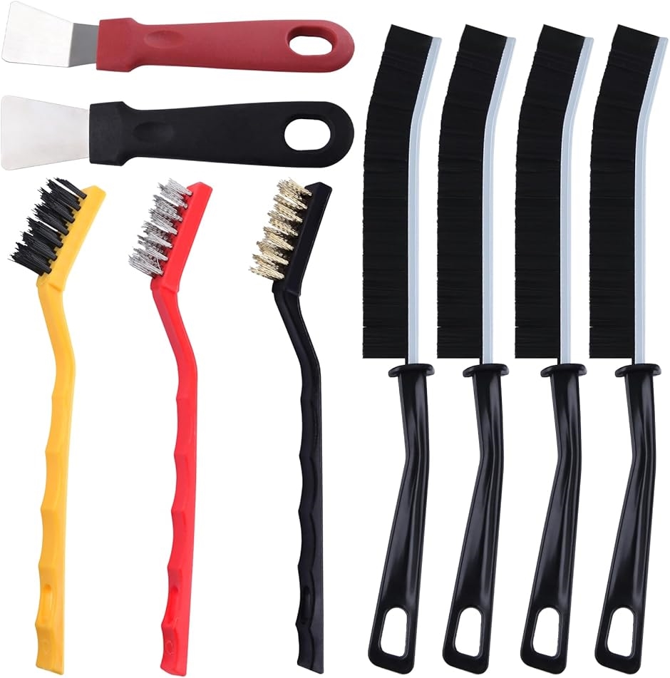 「セット内容」4x隙間ブラシ、1xワイヤーブラシ、1x銅線ブラシ、1xナイロンブラシ、1xストレートヘラ、1xカーブヘラ、異なるクリーニング状況用に設計され、様々なクリーニングのニーズを満たすことができます。