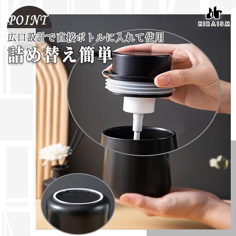 「高級感あるセラミック製」マットな質感のセラミック製ポンプ。