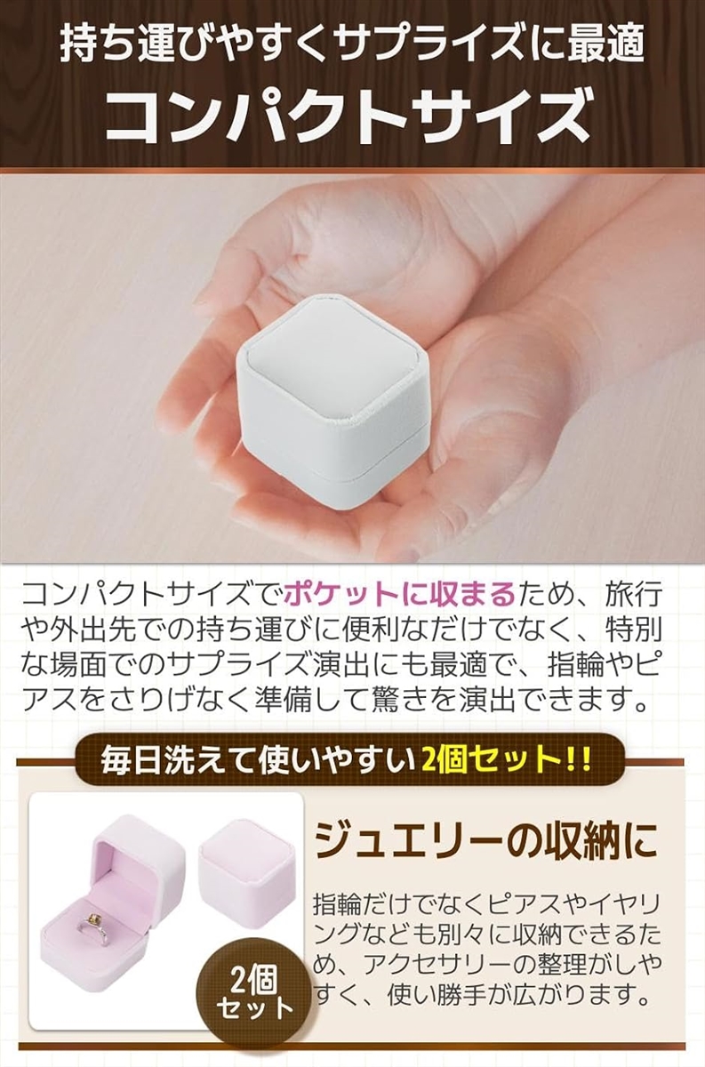 「コンパクトサイズ」コンパクトサイズでポケットに収まるため、旅行や外出先での持ち運びに便利なだけでなく、特別な場面でのサプライズ演出にも最適で、指輪やピアスをさりげなく準備して驚きを演出できます。