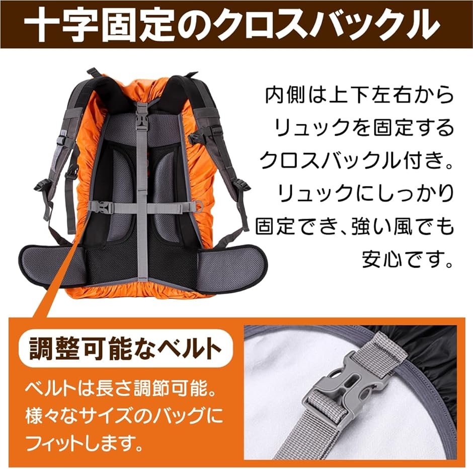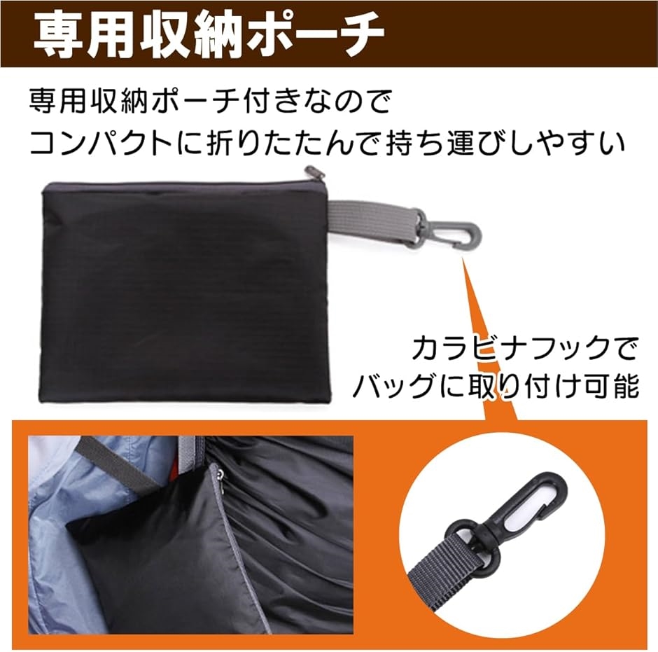クロスバックルベルトとゴムバンド付きでリュックにしっかり固定でき強風、暴雨でもずれることなく安心。 軽量でコンパクト。収納ポーチ付きでかさ張らず持ち運びしやすいのでいざという時の備えに便利です。