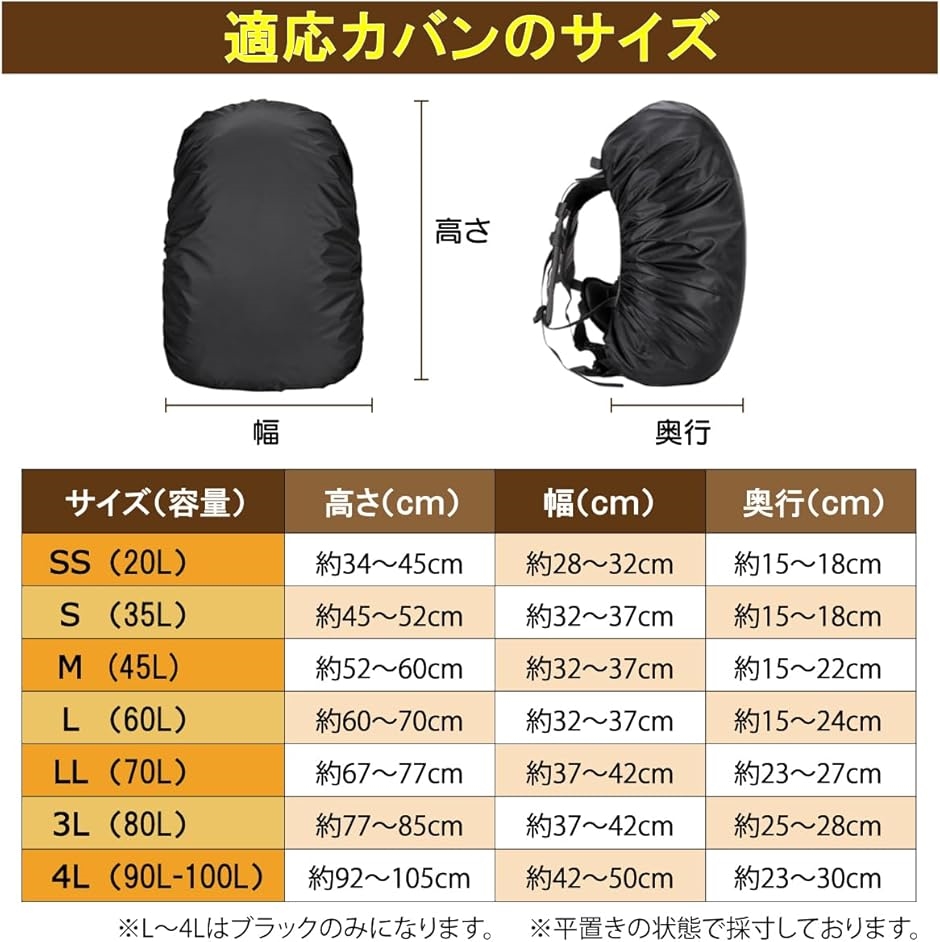 「容量サイズ」7サイズ(20L/35L/45L/60L/70L/80L/90-100L) *リュックに荷物をたくさん詰める場合は、1つ上のサイズをお買い求めください。