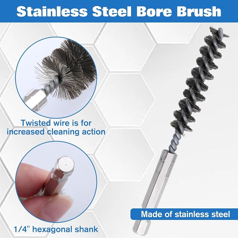 材質:これらのボアブラシはステンレス鋼でできており、丈夫で長持ちし、錆や細部をきれいにすることができます。
