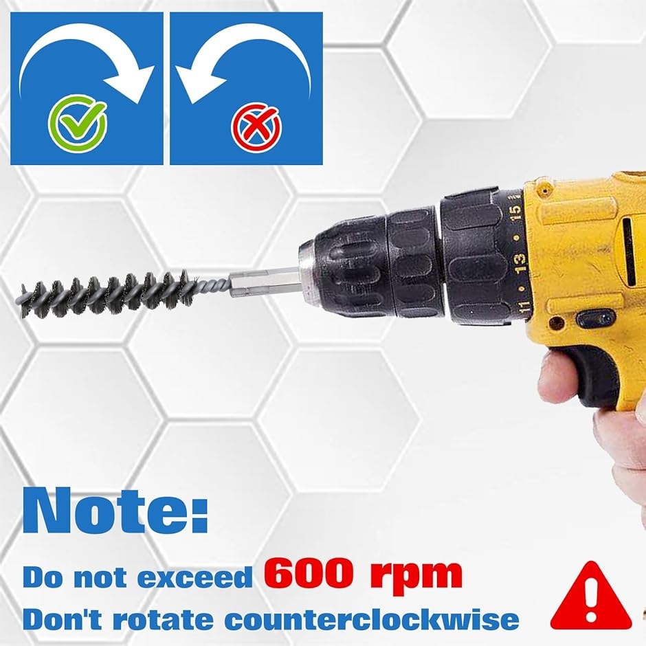 デザイン:1/4インチの六角シャンクにより、これらのブラシはほとんどのドリルに適しており、ねじれた毛は脱落や変形に抵抗するように設計されています
