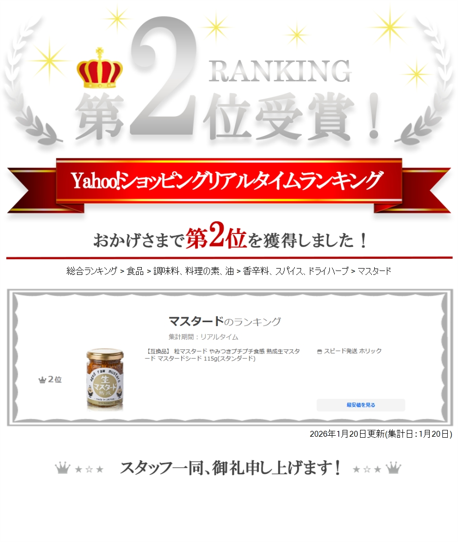 | 商品名 | 粒マスタード やみつきプチプチ食感 熟成生マスタード マスタードシード 115g |