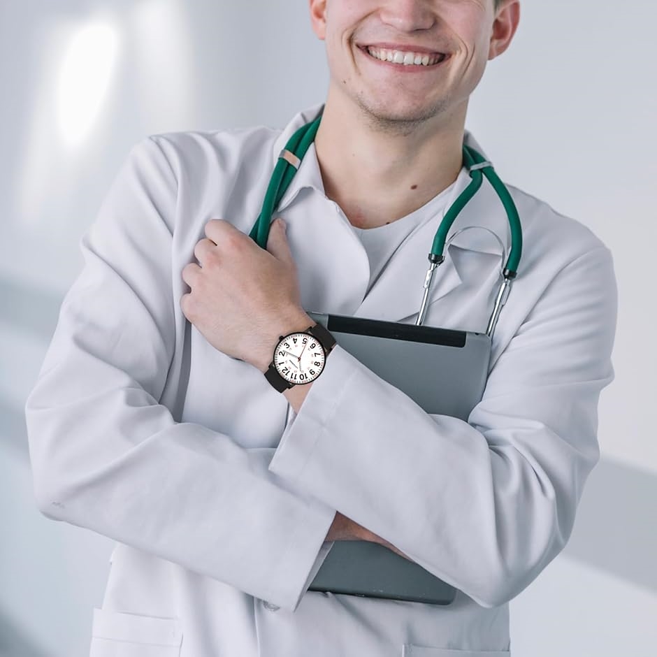 専門看護師の腕時計:三針アナログ腕時計は高品質の日本石英ムーブメントと高可視度の赤色秒針を含み、正確に時間を読み取ることができます。