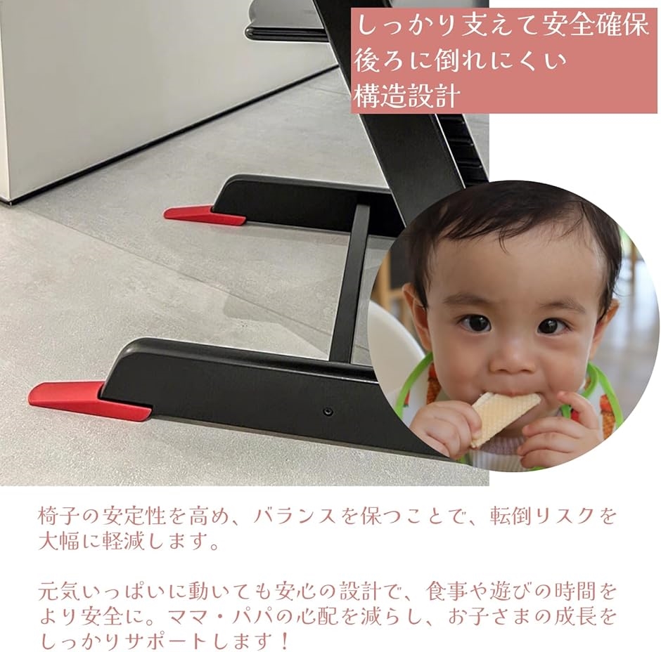 お子様の安全を第一に考え、チェアの安定性をさらに向上させる設計。