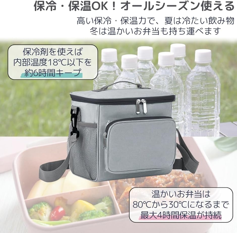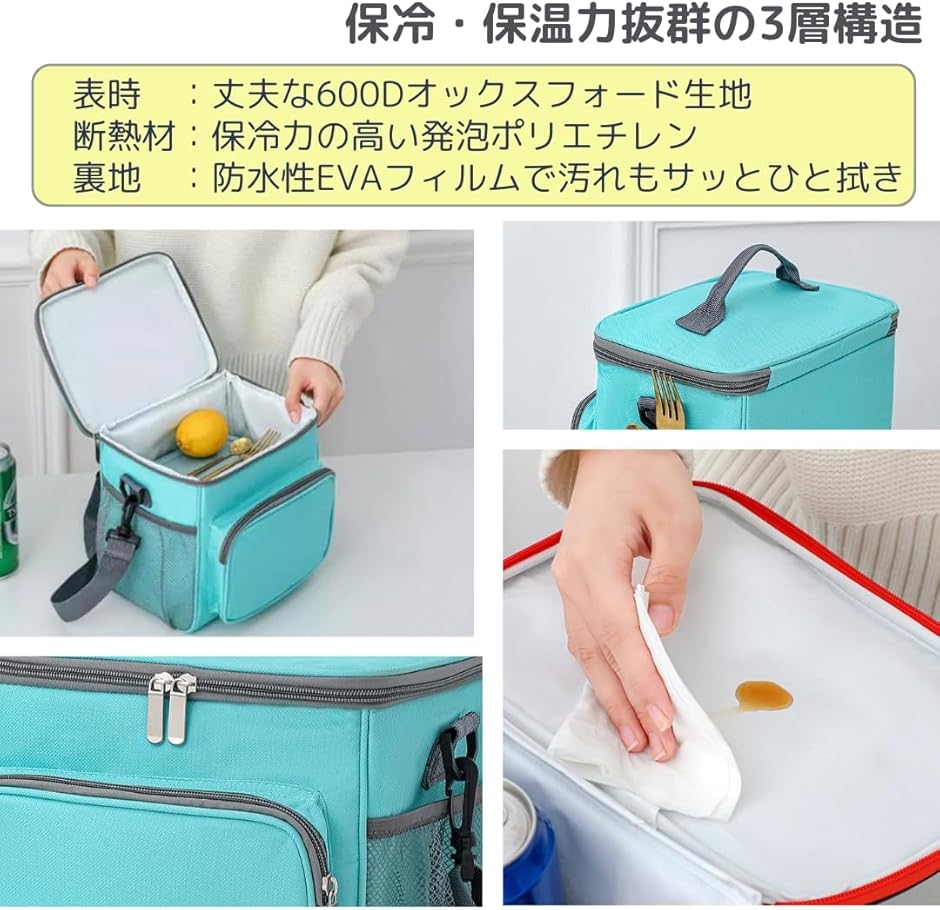 「保冷・保温OK。オールシーズン使える」3層構造で抜群の保冷・保温力。丈夫な600Dオックスフォード生地が外部の衝撃から守り、保冷力の高い5mm発泡ポリエチレンが冷たさをキープ、裏地の防水性EVAフィルムで汚れもサッとひと拭き。