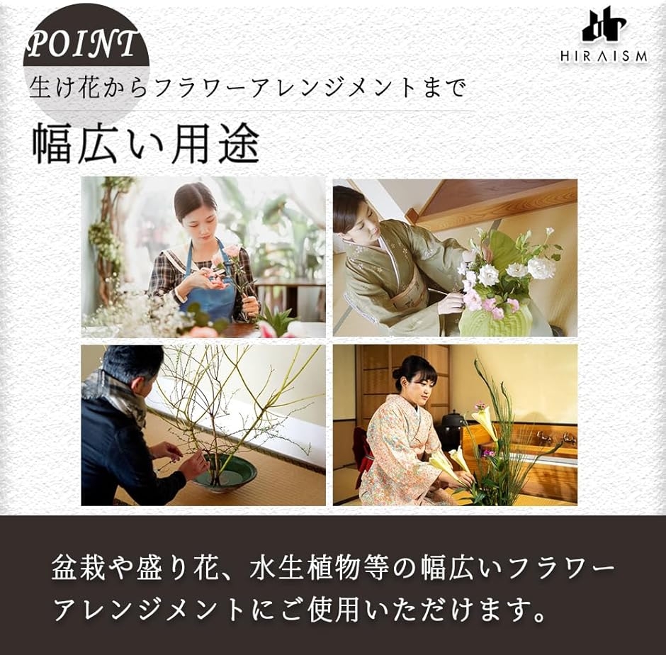 「美しい生け花を演出」生け花やフラワーアレンジメントにぴったりの浅型の花器です。