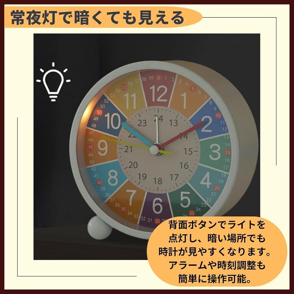 | 商品名 | 目覚まし時計 置時計 子供 アナログ キッズ おしゃれ ベルなし ライト付き 直径11cm |