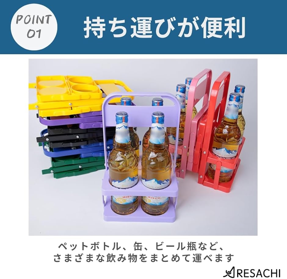 「持ち運びが便利」ペットボトル、缶、ビール瓶など、さまざまな飲み物をまとめて運べます。
