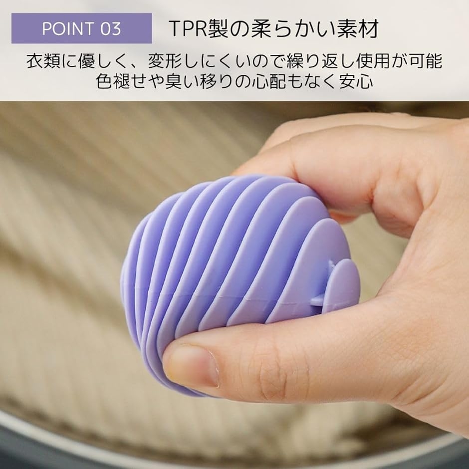 「商品詳細」セット内容:3個 サイズ:直径5.5cm 材質:TPR(熱可塑性ゴム) * 水量4L〜5Lに対し、洗濯ボール3〜6個が目安です。