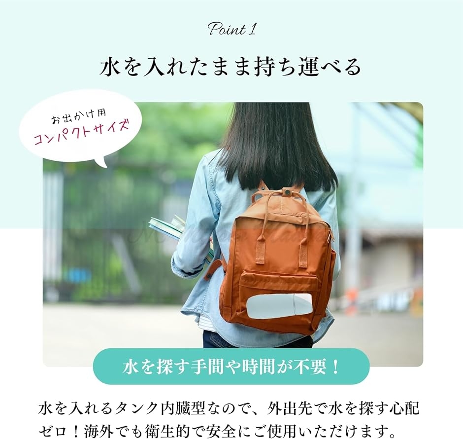 「水内蔵型」: 水を入れたまま、持ち運べます。