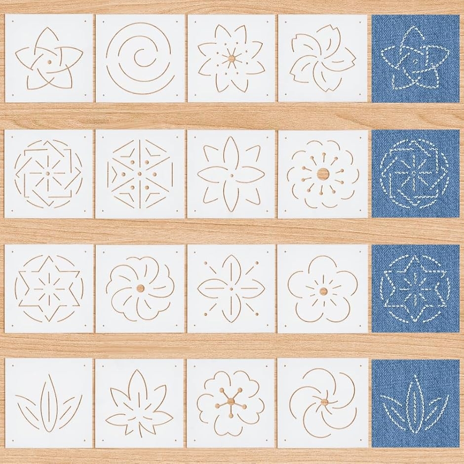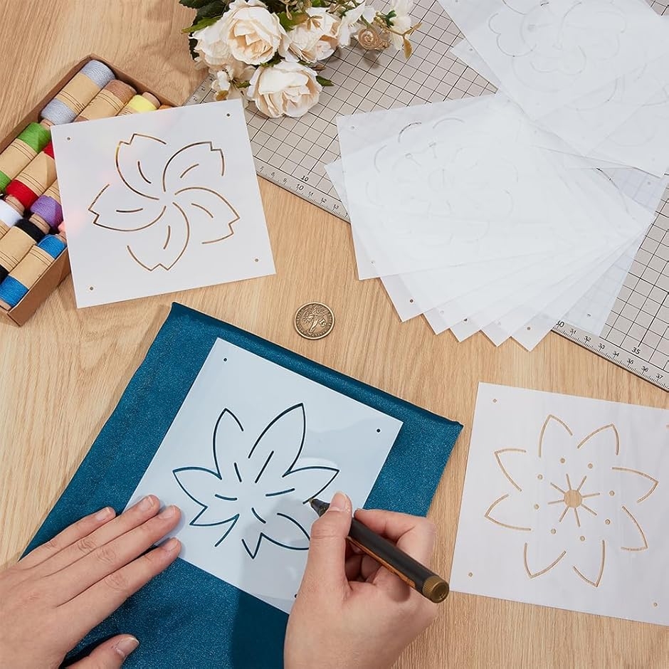 | 商品名 | 16枚 刺繍ステンシル 13x13cm 厚さ0.3mm 刺し子ステンシル 花・葉・六芒星など16スタイル PET 描画線テンプレート 絵描き道具 刺し子テンプレート |