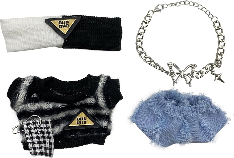 ぬいぐるみ用のセーター・デニムパンツ・ヘアバンド・ネックレスのセットです。