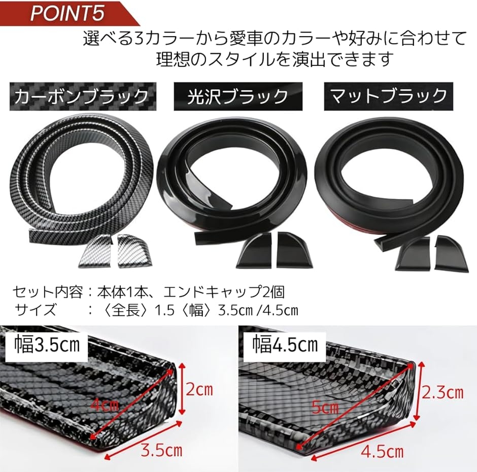 「商品詳細」セット内容:本体1本、エンドキャップ2個 サイズ:[全長]1.5m [幅]3.5cm /4.5cm カラー:マットブラック/光沢ブラック/カーボンブラック