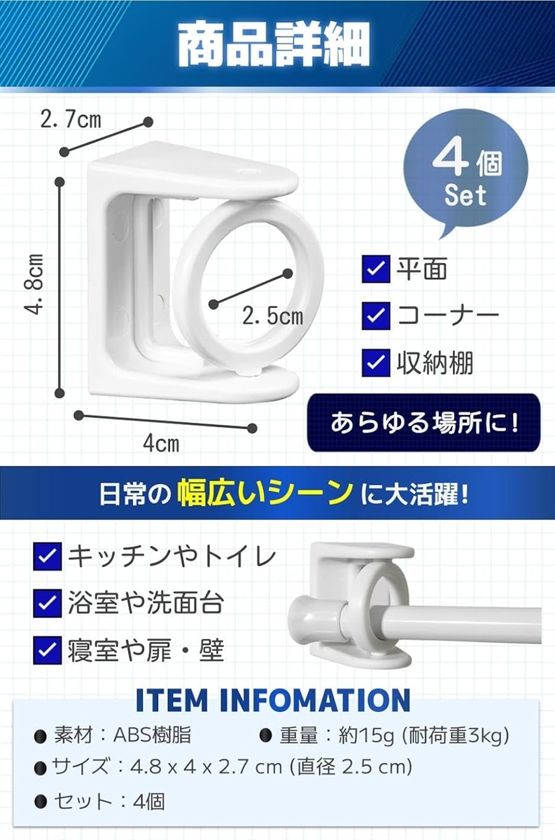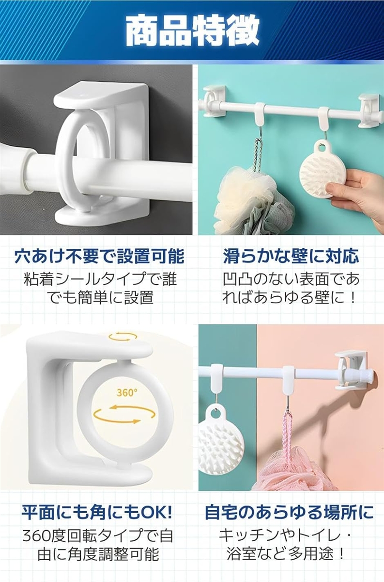 | 商品名 | 突っ張り棒 斜め 支え 回転 柔軟 コーナー フック 受け 引っ掛ける 4個セット |