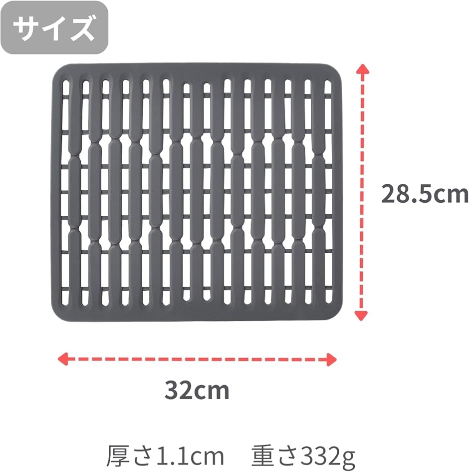 | 商品名 | シンク 流し台 マット シリコン 保護 キッチン 調理台 滑り止め 耐熱温度230度 32x28.5cm グレー |