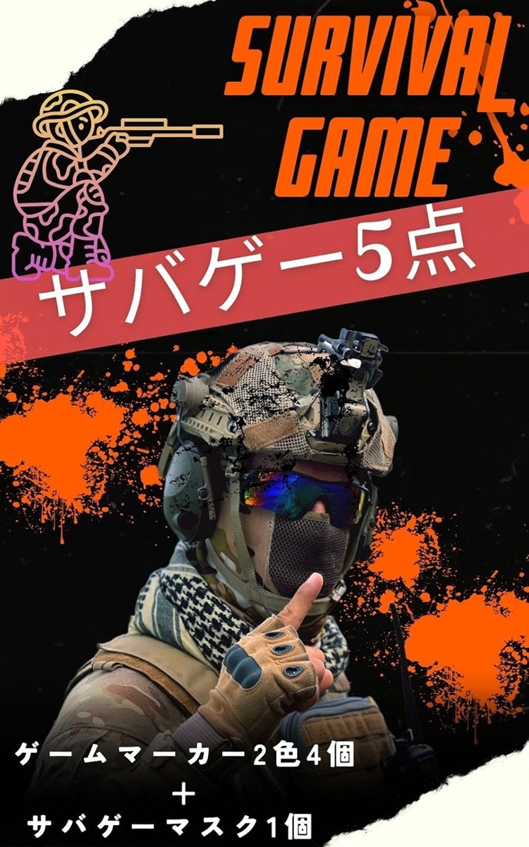 「内容」 サバゲーマスク 1個 材質:メッシュ + サバゲーゲームマーカー 2色 各2個合計4個 材質:ゴム
