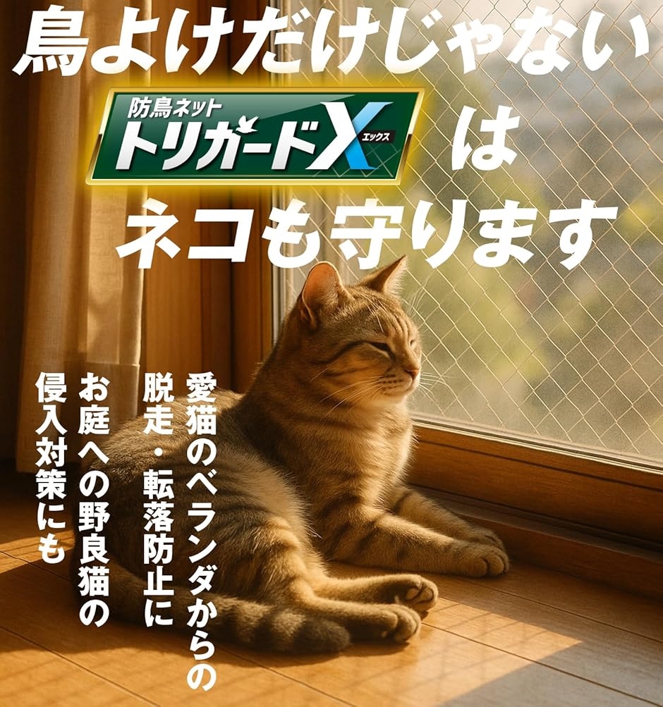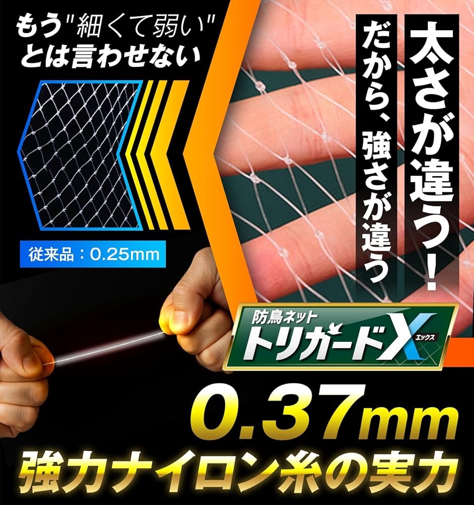 | 商品名 | 防鳥ネット トリガードX 鳥よけネット 鳩よけ 鳥避け 結束バンド30本付き UVカット 強力ナイロン スズメ カラス対策 ベランダ用 家庭菜園 果樹園 |