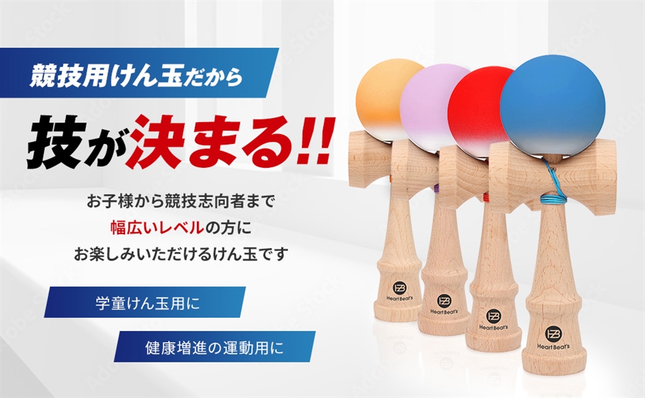 Heart Beat's けん玉は、日本けん玉協会認定と同スペックで、技の決まりやすさを追求した高品質な競技用けん玉です。