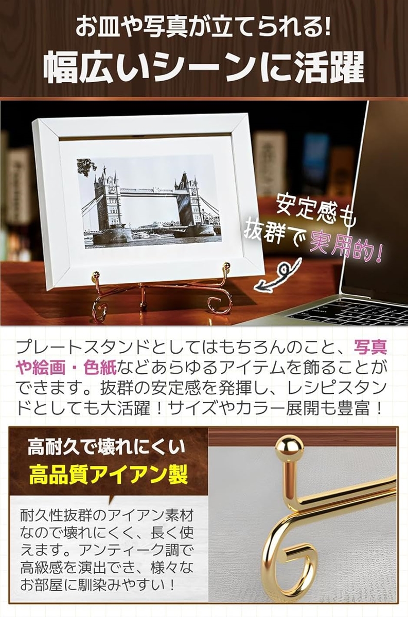 「幅広いシーンに活躍」プレートスタンドとしてはもちろんのこと、写真や絵画・色紙などあらゆるアイテムを飾ることができます。