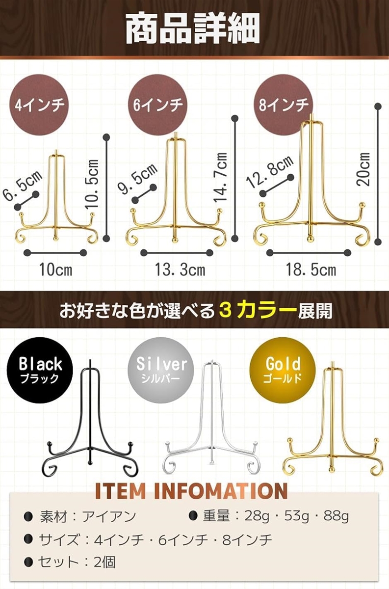 | 商品名 | 皿立て プレートスタンド スタンド お皿スタンド 写真スタンド 色紙立て 2個セット シルバー 4インチ |