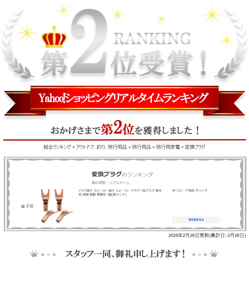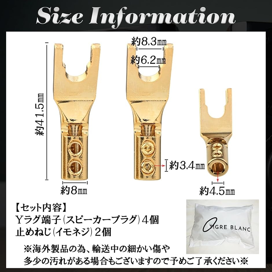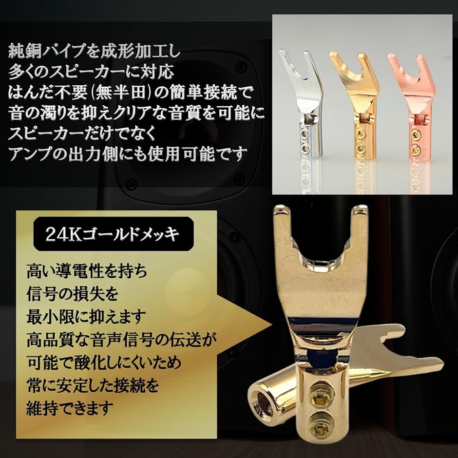 | 商品名 | Yラグ端子 スピーカー端子 スピーカープラグ Y型プラグ 無半田 純銅 銅製 導電性 4個 |