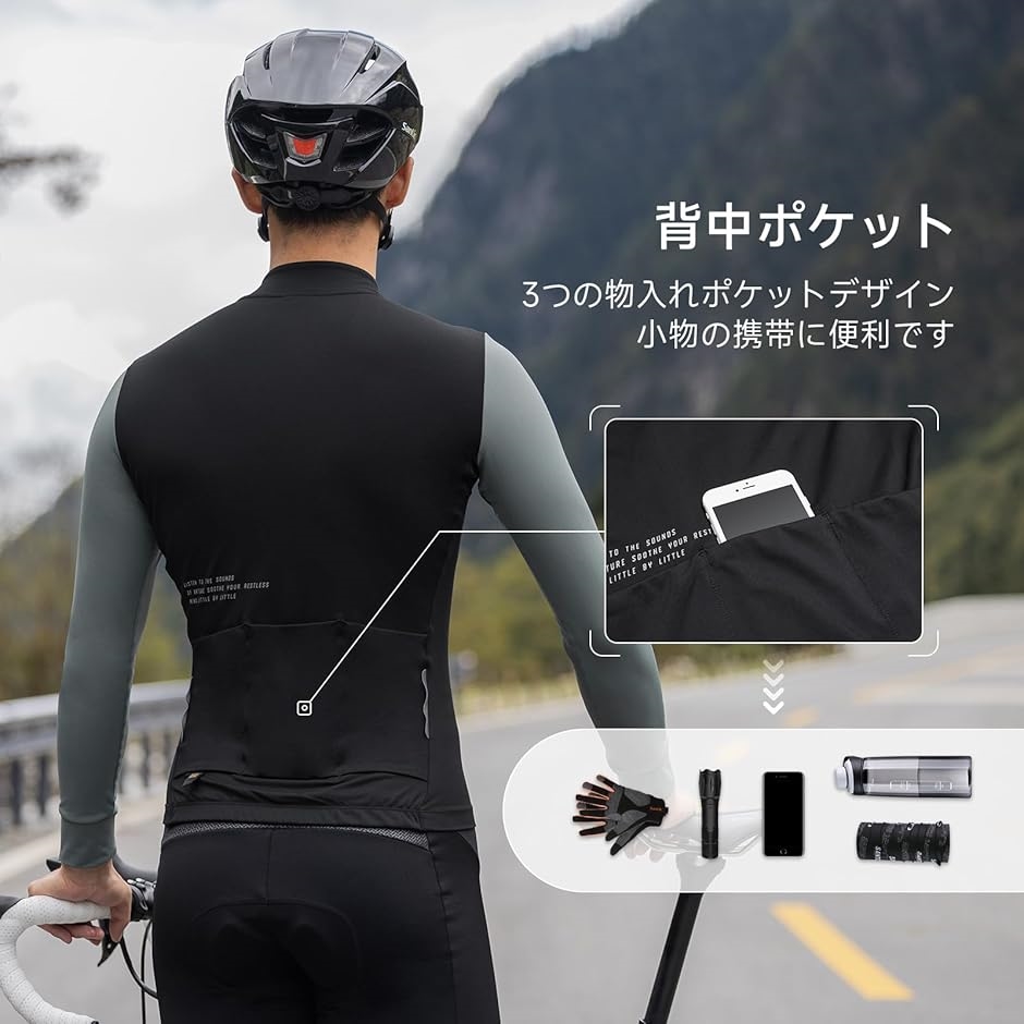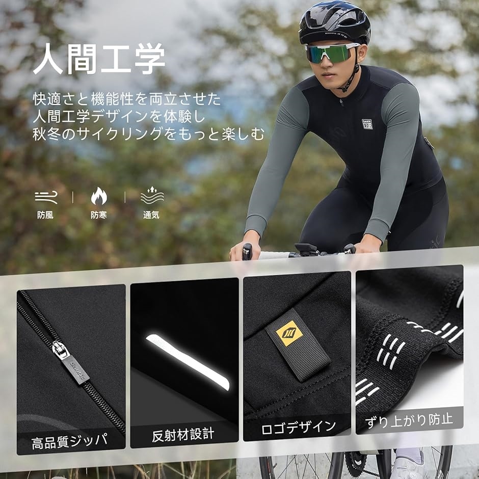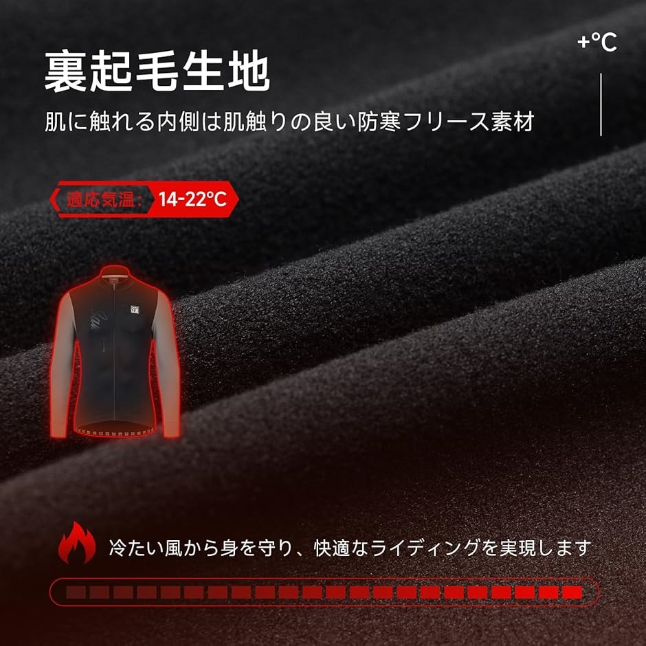 | 商品名 | サイクルジャージ 長袖 秋 冬 裏起毛 防風 防寒 サイクルジャケット サイクリングウェア メンズ 14〜22度対応 ブラック M |