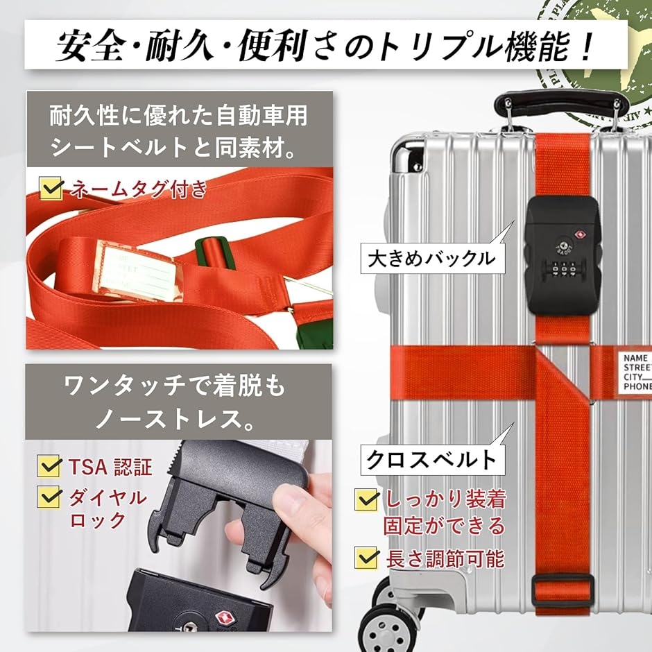 | 商品名 | スーツケースベルト クロスバンド TSAロック 荷物固定ベルト 旅行 便利グッツ ストラップベルト キャリーケース |