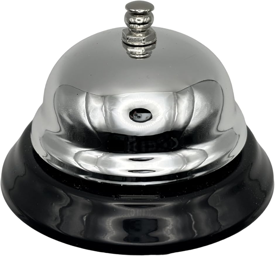 デザイン: クラシックなシルバー仕上げのカウンターベル、直径8.5cm、高さ6cmの洗練されたデザイン