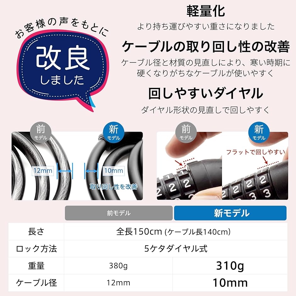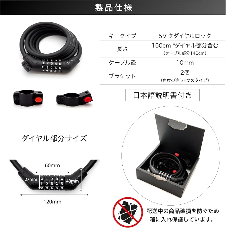 | 商品名 | ケーブルロック 自転車ロック 5ケタダイヤル式 回しやすい ワイヤーロック バイク キックボード |