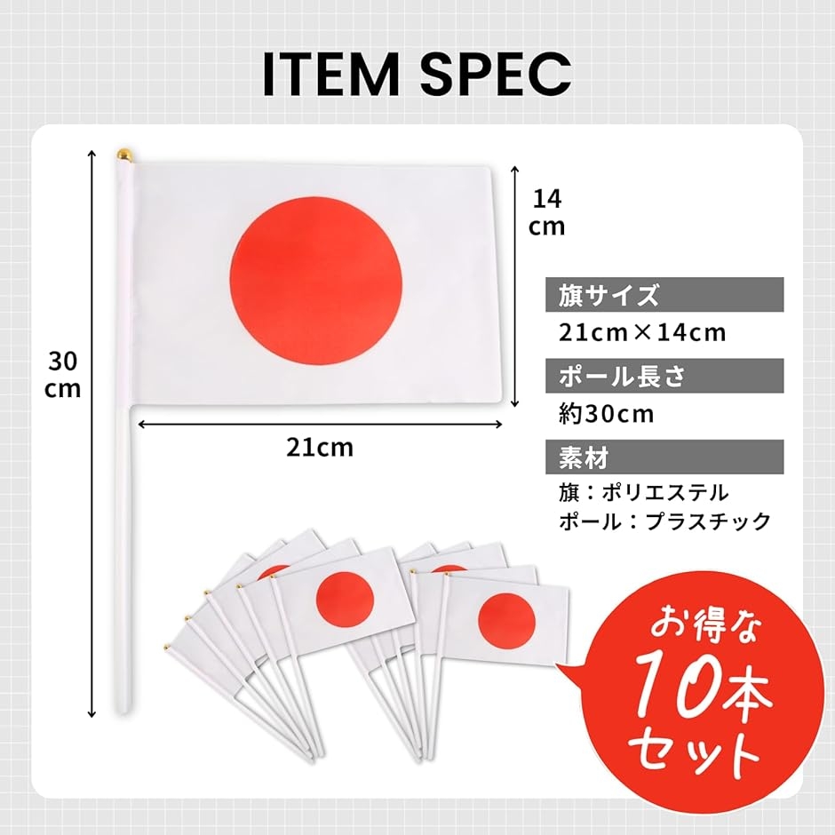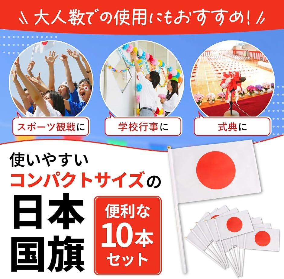 | 商品名 | 日本国旗 国旗 日本 ミニ国旗 スポーツ 観戦 応援 式典 祝日 10本セット |
