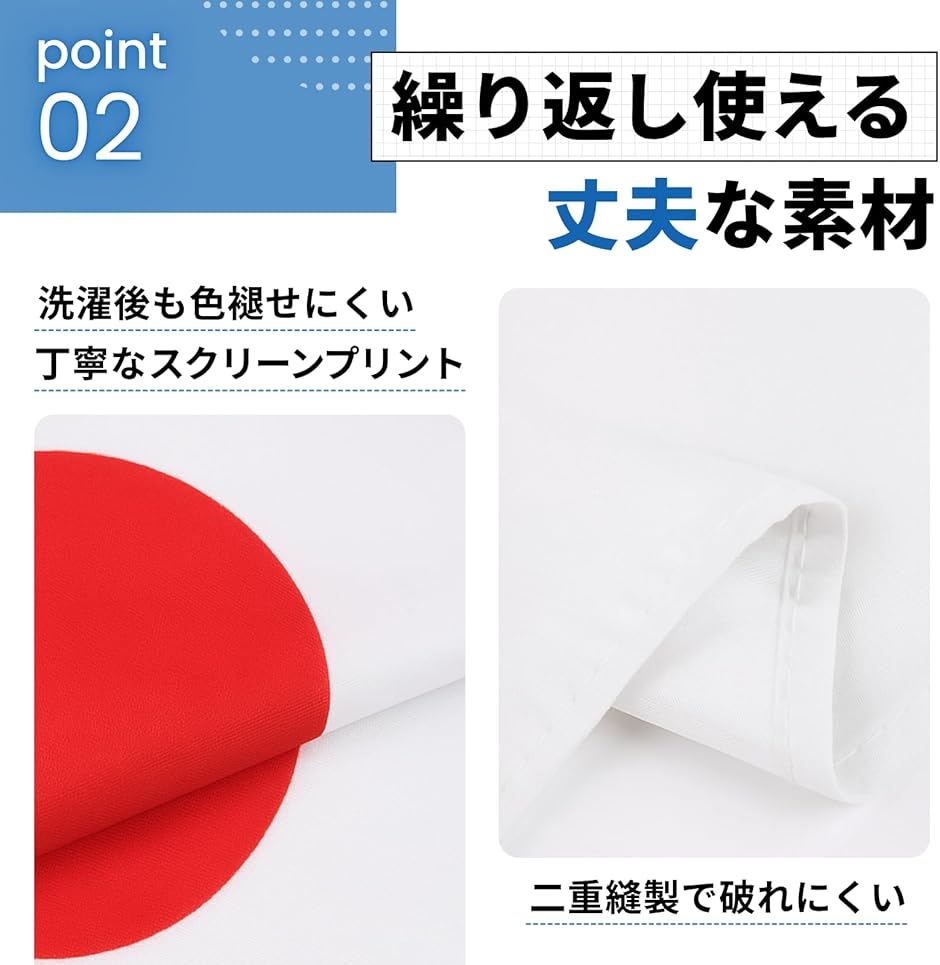 「耐久性ばっちり」旗の周りは二本縫いがされています。