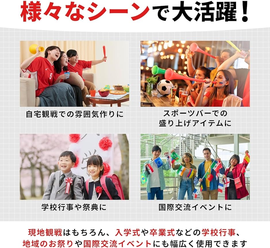 「用途いろいろ」サッカーや野球、マラソンや水泳、駅伝などスポーツの応援に。