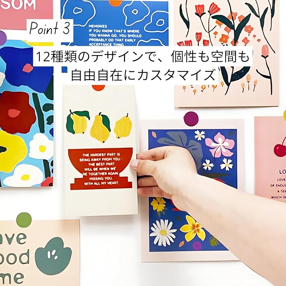 「はってはがせるから、気分次第で自由にレイアウト」壁紙や壁掛けインテリアとしても使えるアートポスターのような美しさ。