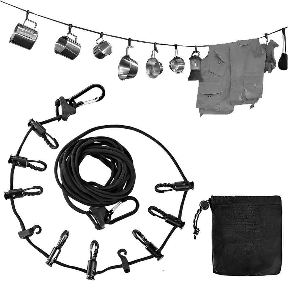 「商品詳細」素材:ナイロン・ポリエステル重量:約80g/サイズ:全長 5m/セット:1個(クリップ10個・ケース付き)/