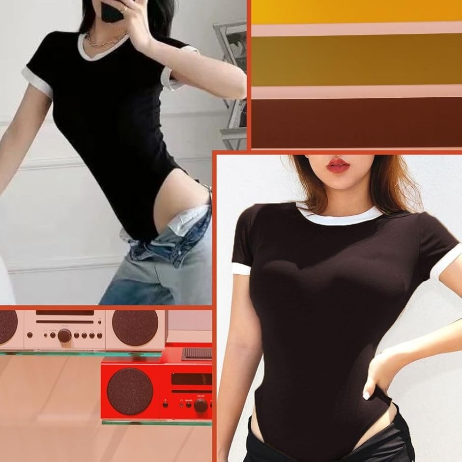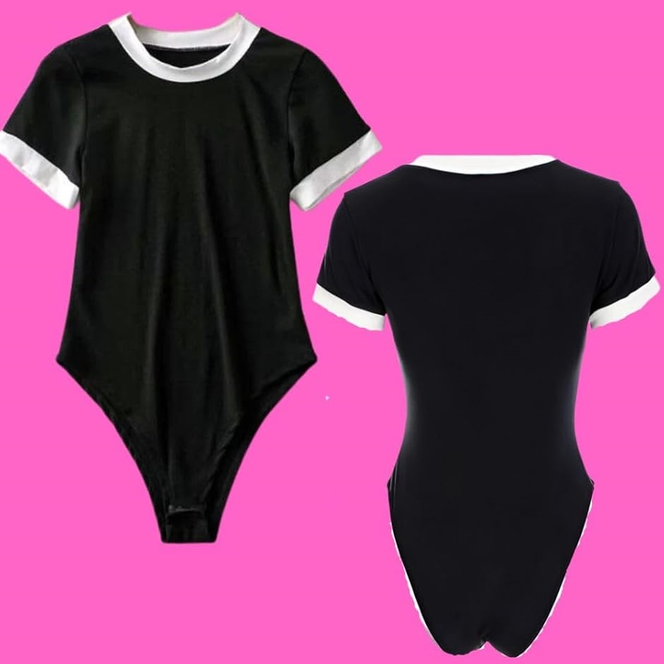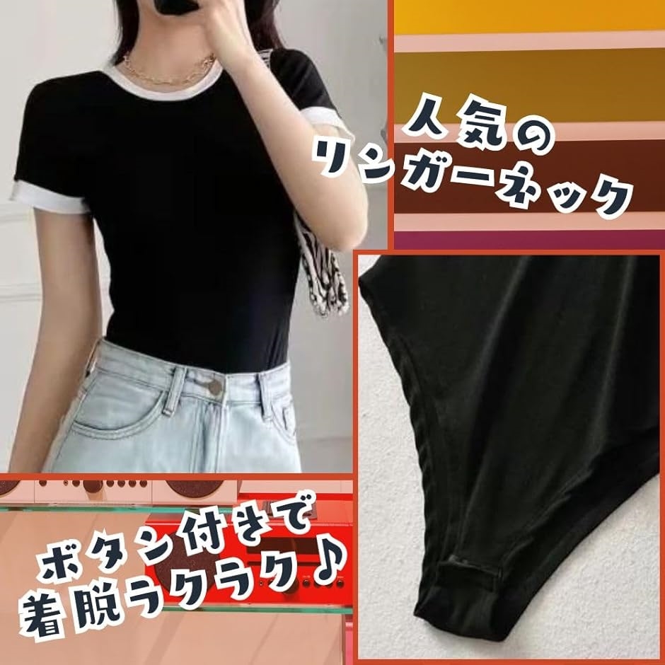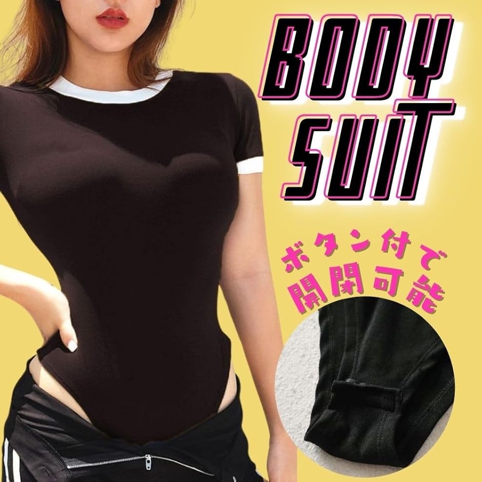 「トレンドデザイン」セクシーでおしゃれな韓国っぽ半袖ハイレグボディースーツです。