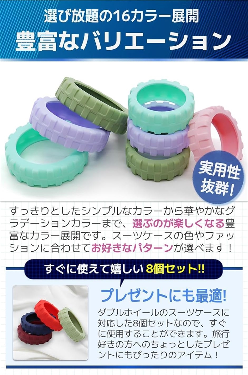 「プレゼントにも最適.」ダブルホイールのスーツケースに対応した8個セットなので、すぐに使用することができます。