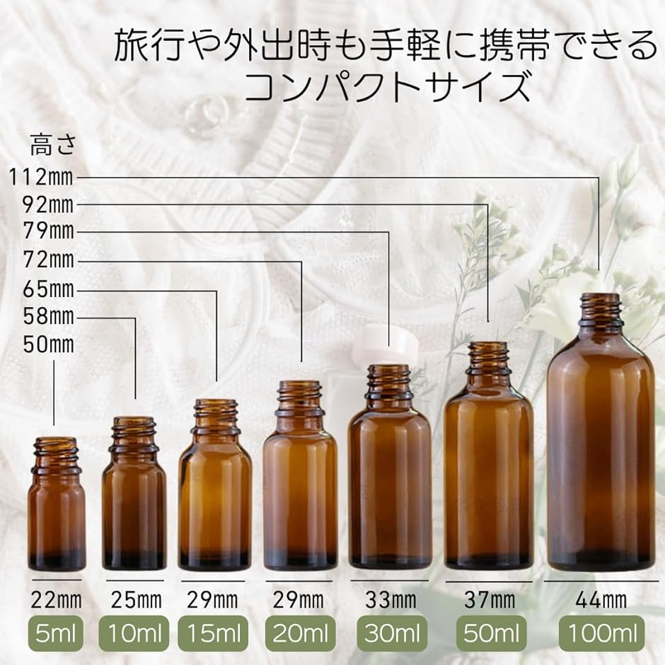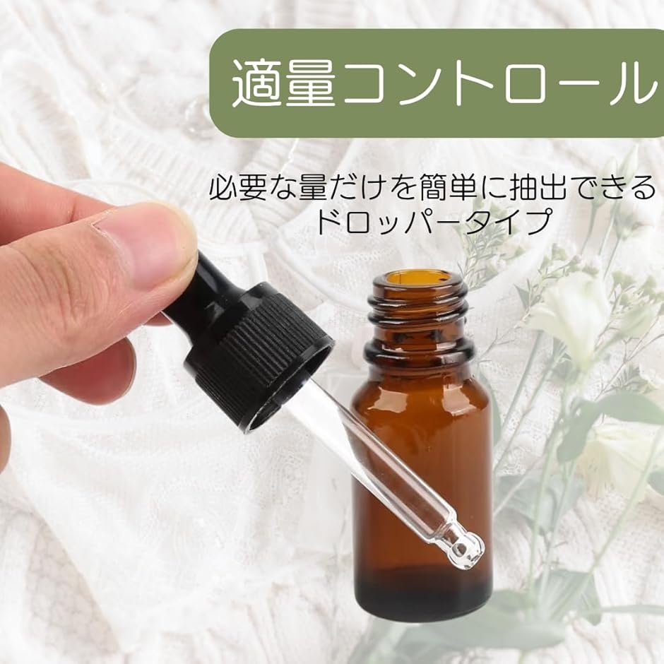 「毎日の美容、もっと手軽に」スポイト付きの高品質ガラス遮光瓶で、アロマオイルや化粧品の一滴一滴を大切に保管。